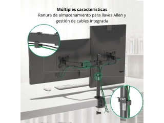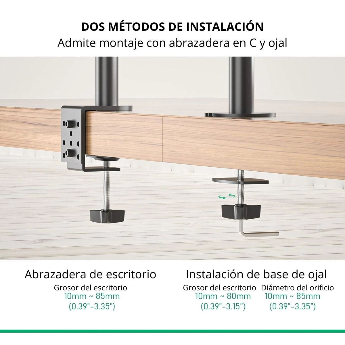 Soporte doble para monitoresnBase para dos monitoresnBrazo de montaje para dos pantallasnSoporte ergonómico para dos monitoresnMontaje de escritorio para doble pantalla