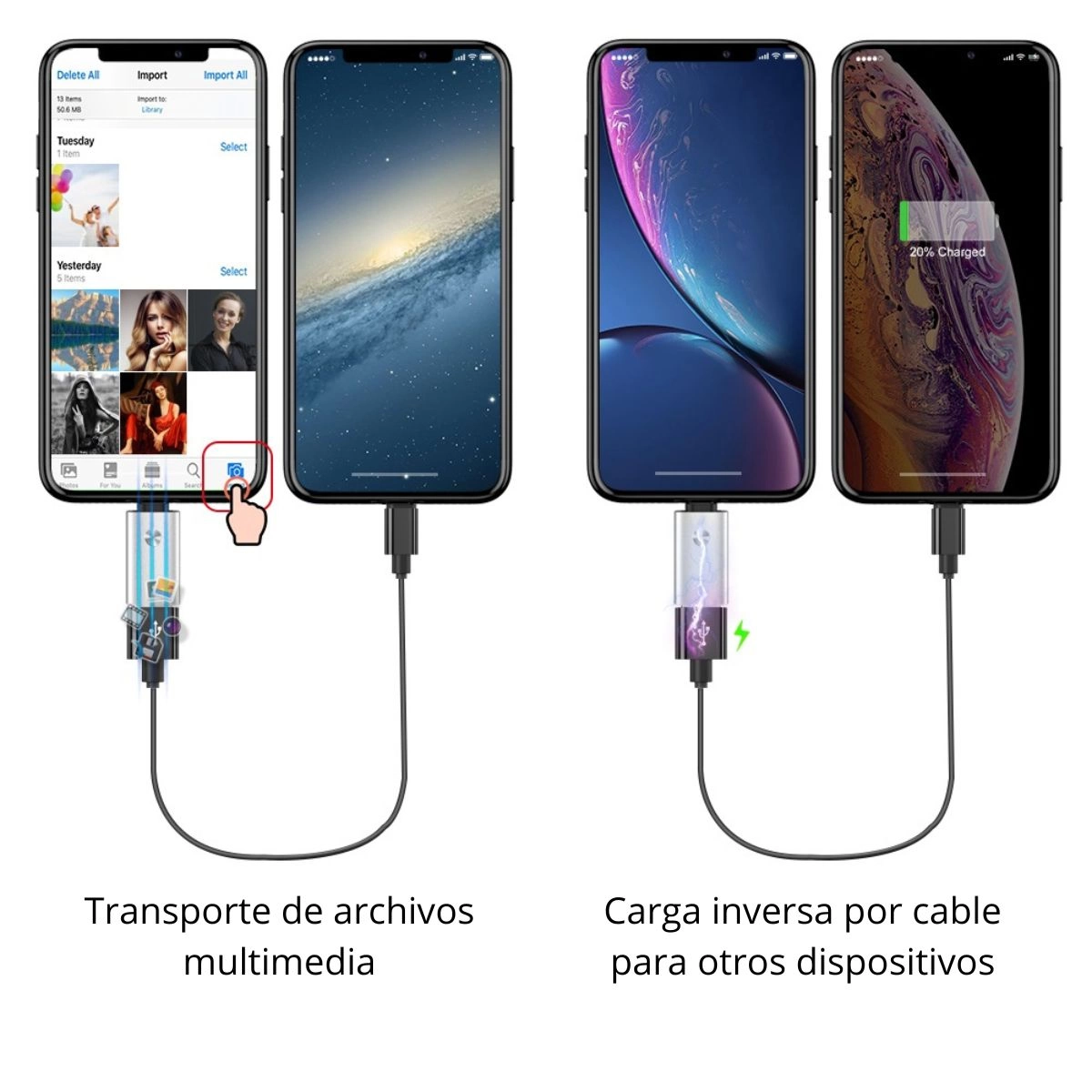 Este adaptador hembra de iOS a USB-A garantiza conexiones fáciles y un rendimiento de alta velocidad para transferir fotos y vídeos en segundos.
