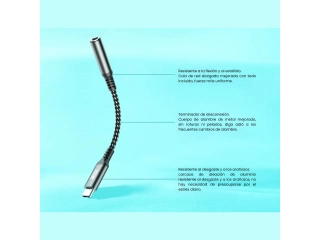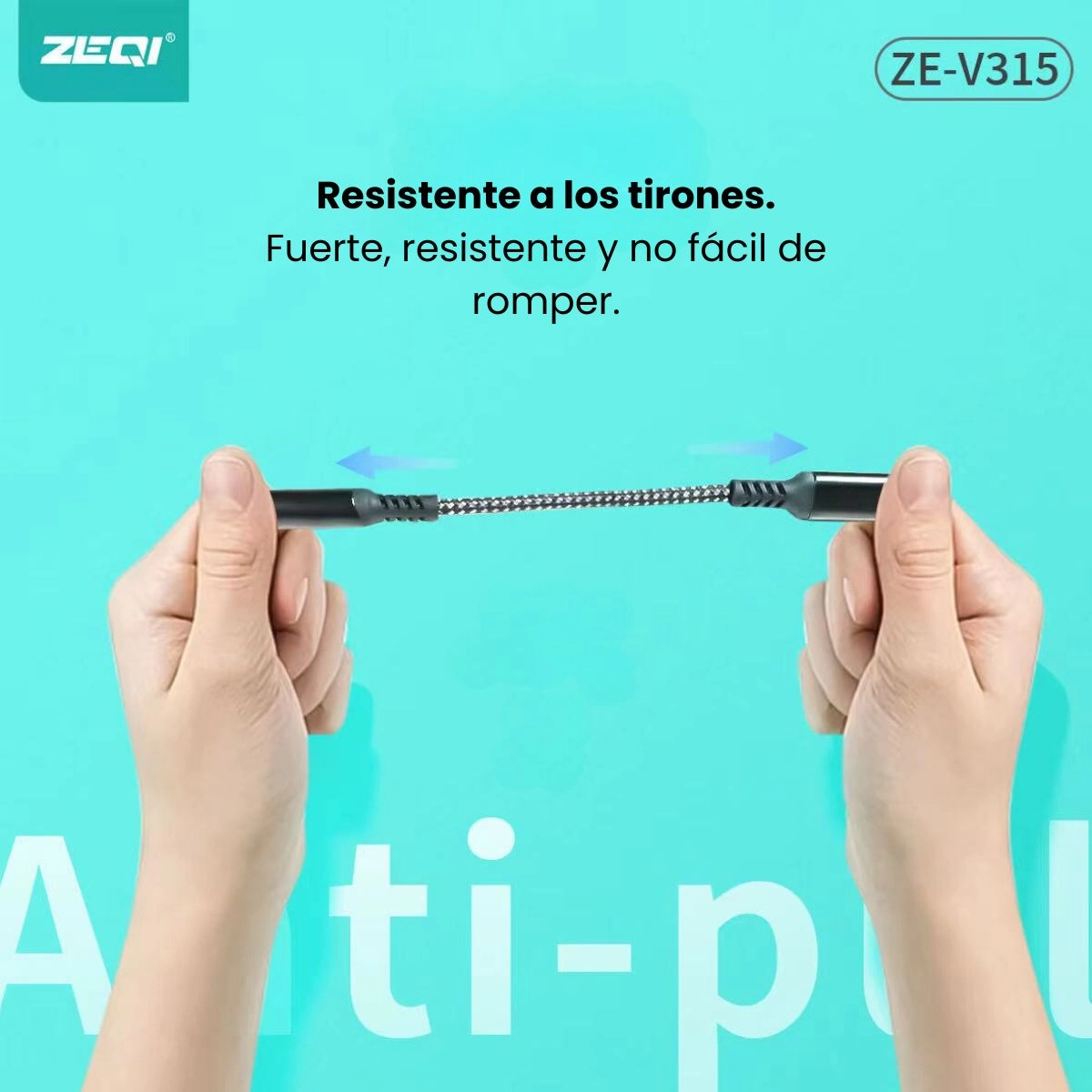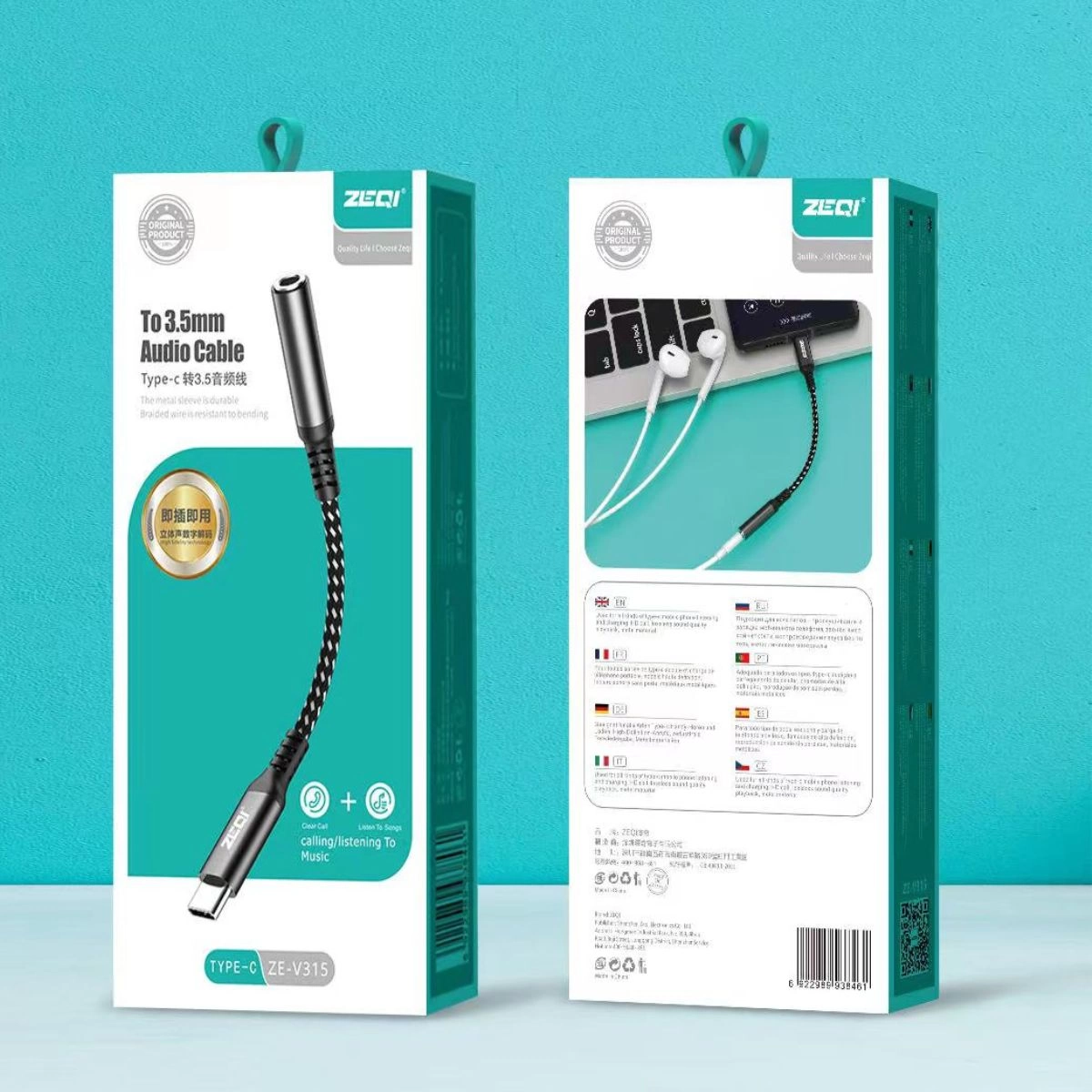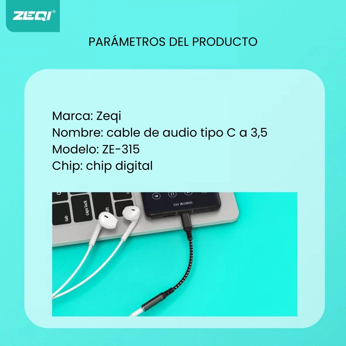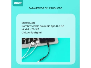 ZE-V315 - Cable de Audio Tipo C a 3.5mm.Este cable de audio Tipo C a 3.5mm es perfecto para conectar tus dispositivos de forma sencilla. Fabricado con funda metálica duradera y alambre trenzado resistente a la flexión, garantiza una conexión de calidad y larga durabilidad. Ideal para mantener siempre el mejor sonido.Marca Zeqi.