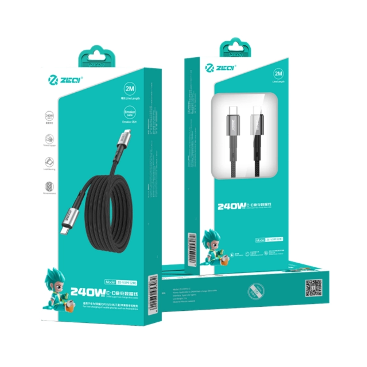 ZEQI CABLE DE DATOS 240W (USB-C - USB-C) 1.2M MODEL: ZE-V398
