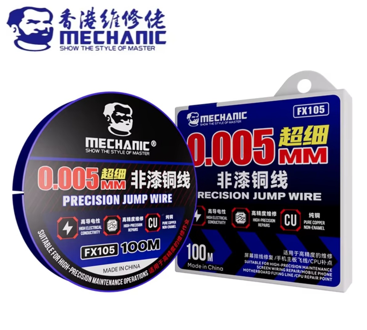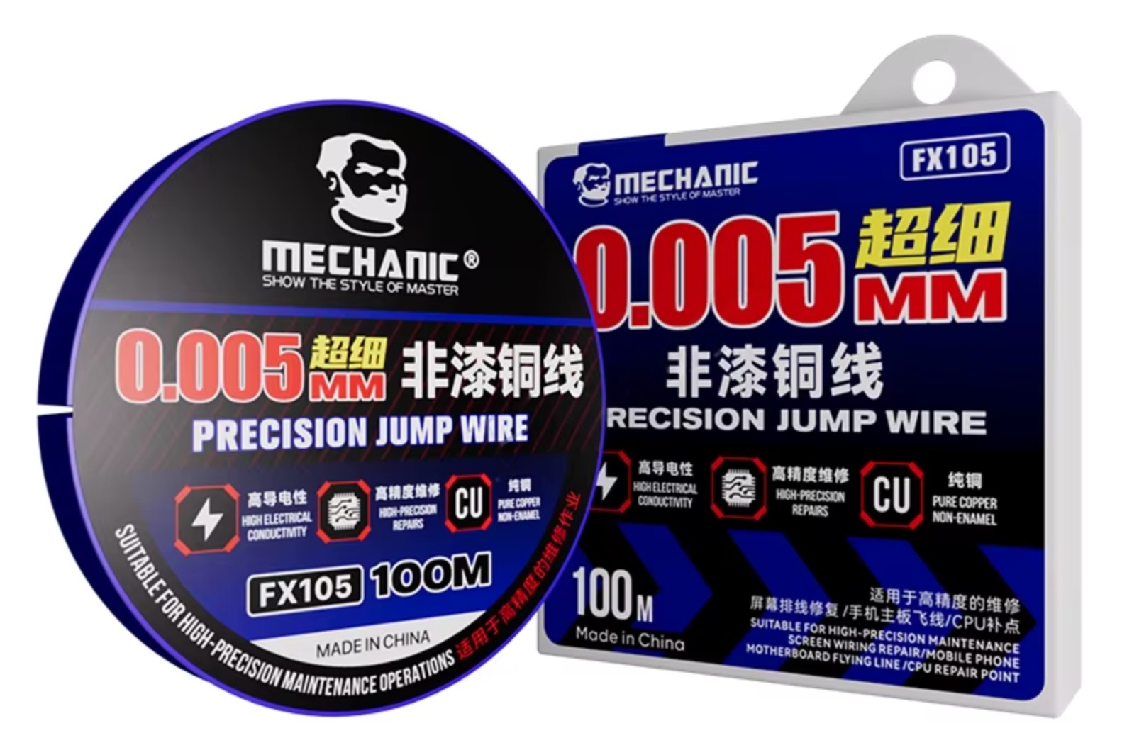 El MECHANIC PRECISION JUMP WIRE FX105 es un hilo ultrafino de alta precisión diseñado para trabajos avanzados de microsoldadura y reparación electrónica. Fabricado en cobre de alta conductividad, este jumper wire permite realizar conexiones extremadamente delicadas en placas PCB, especialmente en dispositivos móviles y componentes de alta densidad.