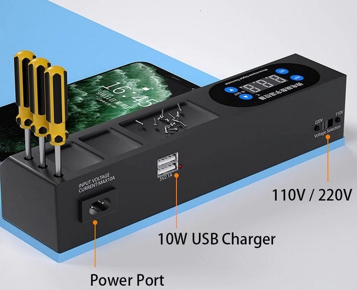 3 puntos para apoyar destornilladores (en parte superior de la carcasa del dispositivo)