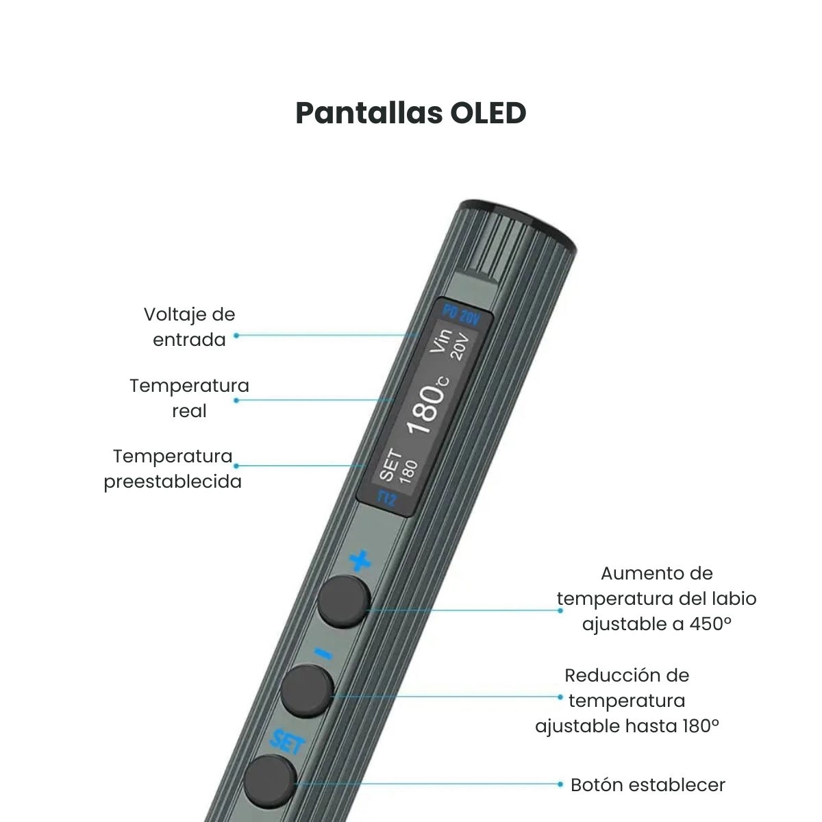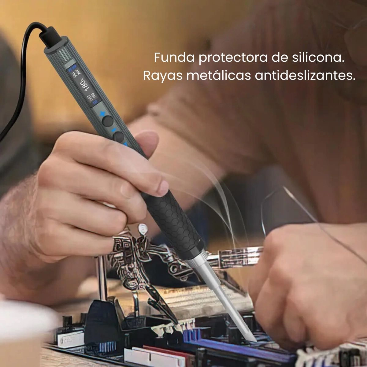 El soldador eléctrico T12 ofrece un desempeño rápido, preciso y confiable, ideal para trabajos electrónicos exigentes. Utiliza cartuchos con resistencia y sensor integrados, lo que permite alcanzar la temperatura de trabajo en pocos segundos y mantener una excelente estabilidad térmica. Su diseño compacto y moderno incluye conexión USB Tipo C de alimentación cableado para garantizar un funcionamiento estable y seguro, facilitando su uso en cualquier entorno de trabajo.