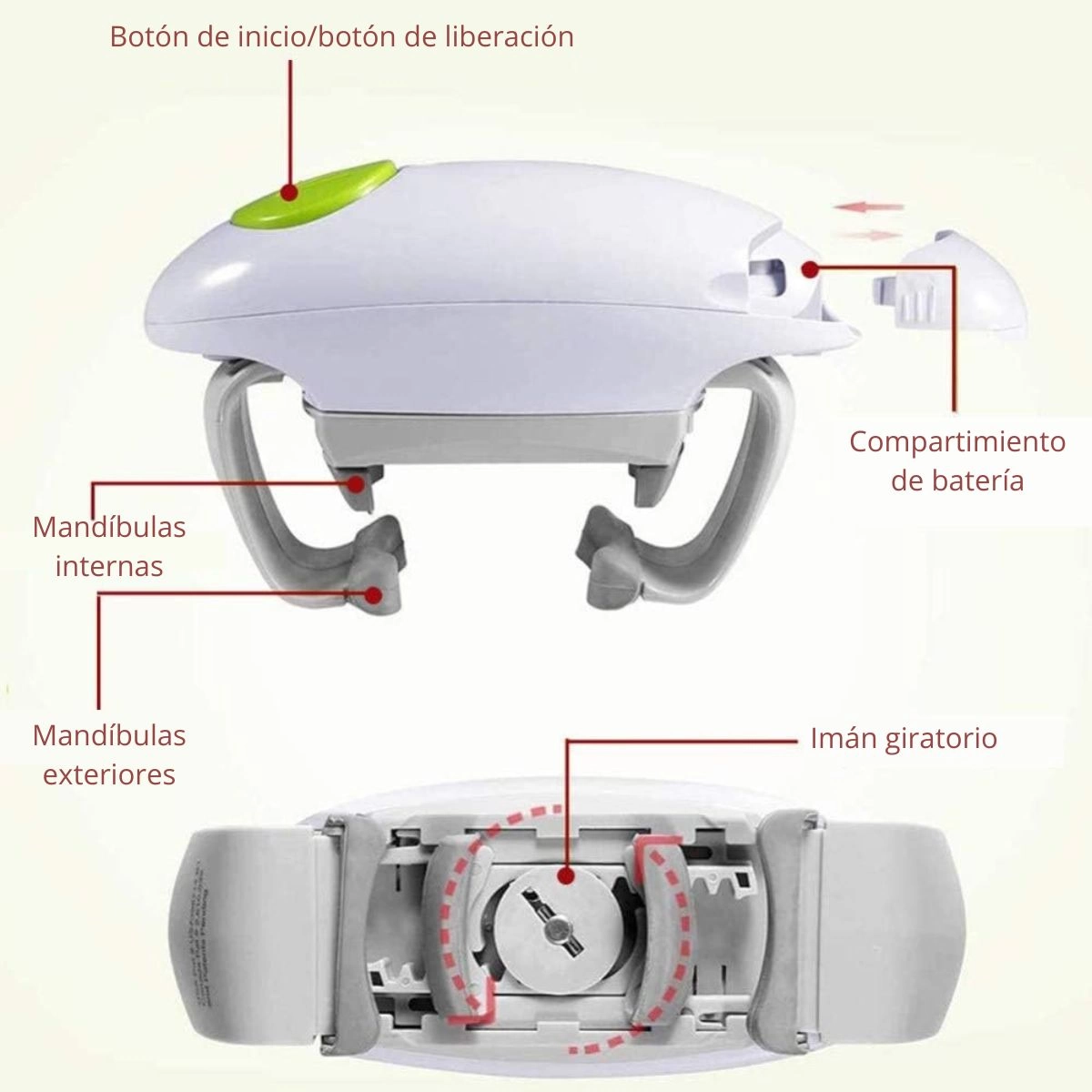 Funciona en todos los tamaños de tapa: Este abridor de frascos eléctrico puede abrir fácilmente tapas de 1,2 a 3,5 pulgadas, se ajusta automáticamente a cualquier tamaño de apertura de botella, muy fácil de usar. Tenga en cuenta que no es adecuado para tapas de plástico.