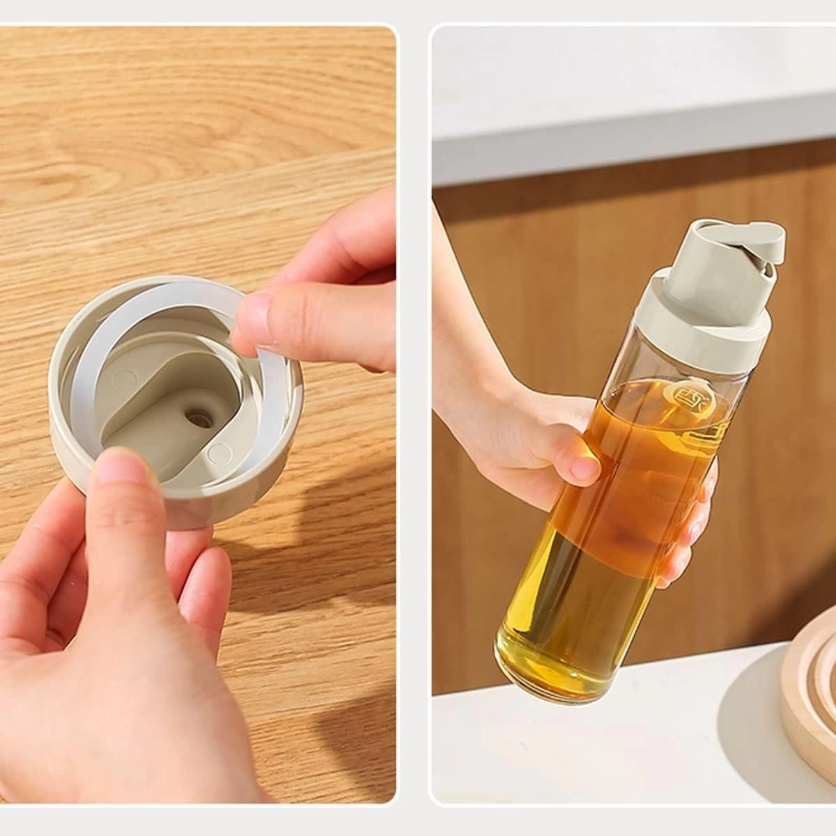 -Tapa automática: se abre y cierra fácilmente al inclinar la botella, evitando derrames y contacto directo.