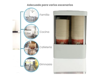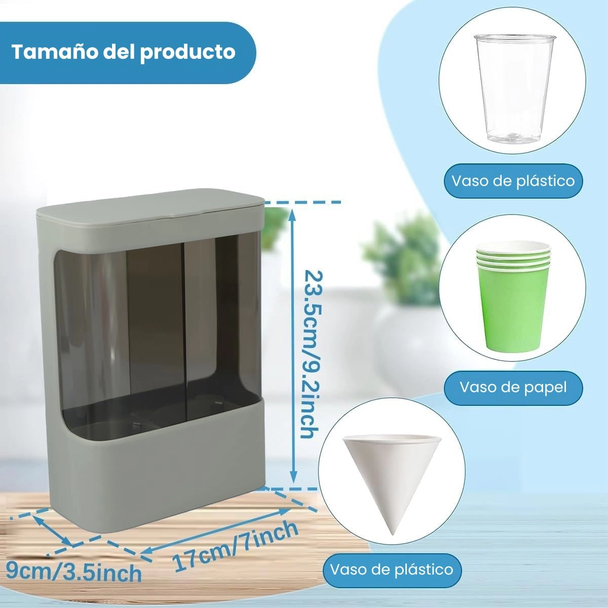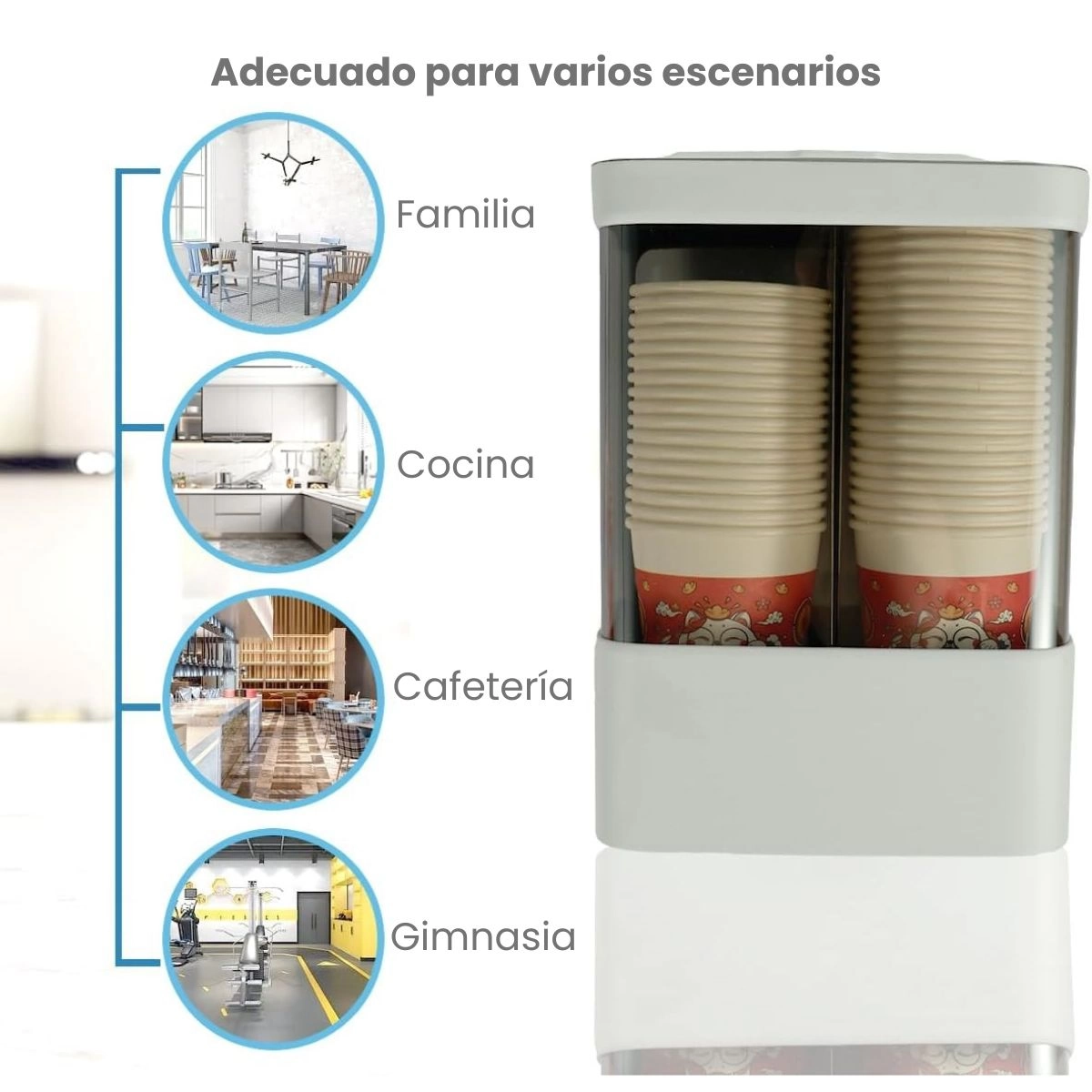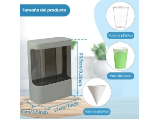 Casquillos Sanitarios: El diseño de este portavasos protege los vasos del polvo y el agua. Basta con abrir la tapa en la parte superior del dispensador para colocar los vasos de papel de forma ordenada y accesible. Organizar y almacenar los vasos de papel nunca ha sido tan fácil.
