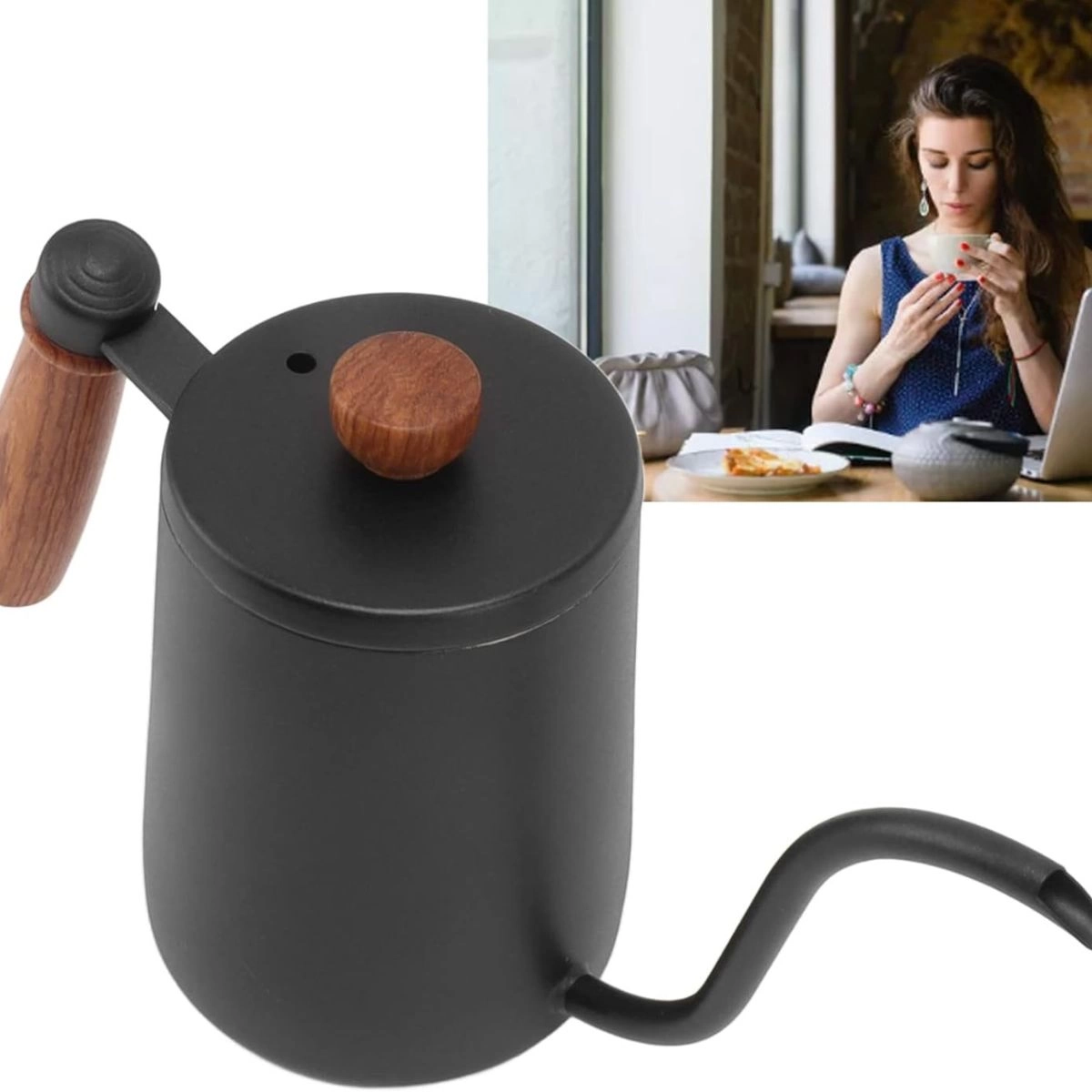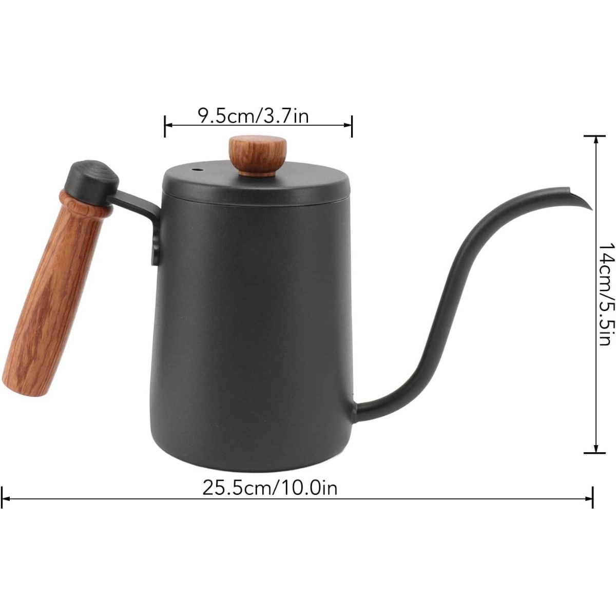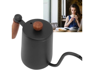 GRAN CAPACIDAD: La cafetera con cuello de cisne tiene capacidad para 600 ml (20 oz) de líquido y puede servir hasta 3 tazas de café a la vez. El mango de madera es fácil de agarrar.