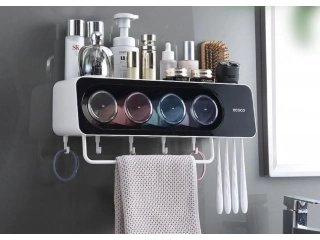 Diseño Mejorado para una Mayor Funcionalidad: El soporte para cepillos de dientes cuenta con un diseño de copas boca abajo, asegurando que los cepillos y las tazas se mantengan secos y limpios en todo momento. Esta función mejorada no solo previene que los cepillos se caigan, sino que también promueve un ambiente de baño más seguro y saludable.