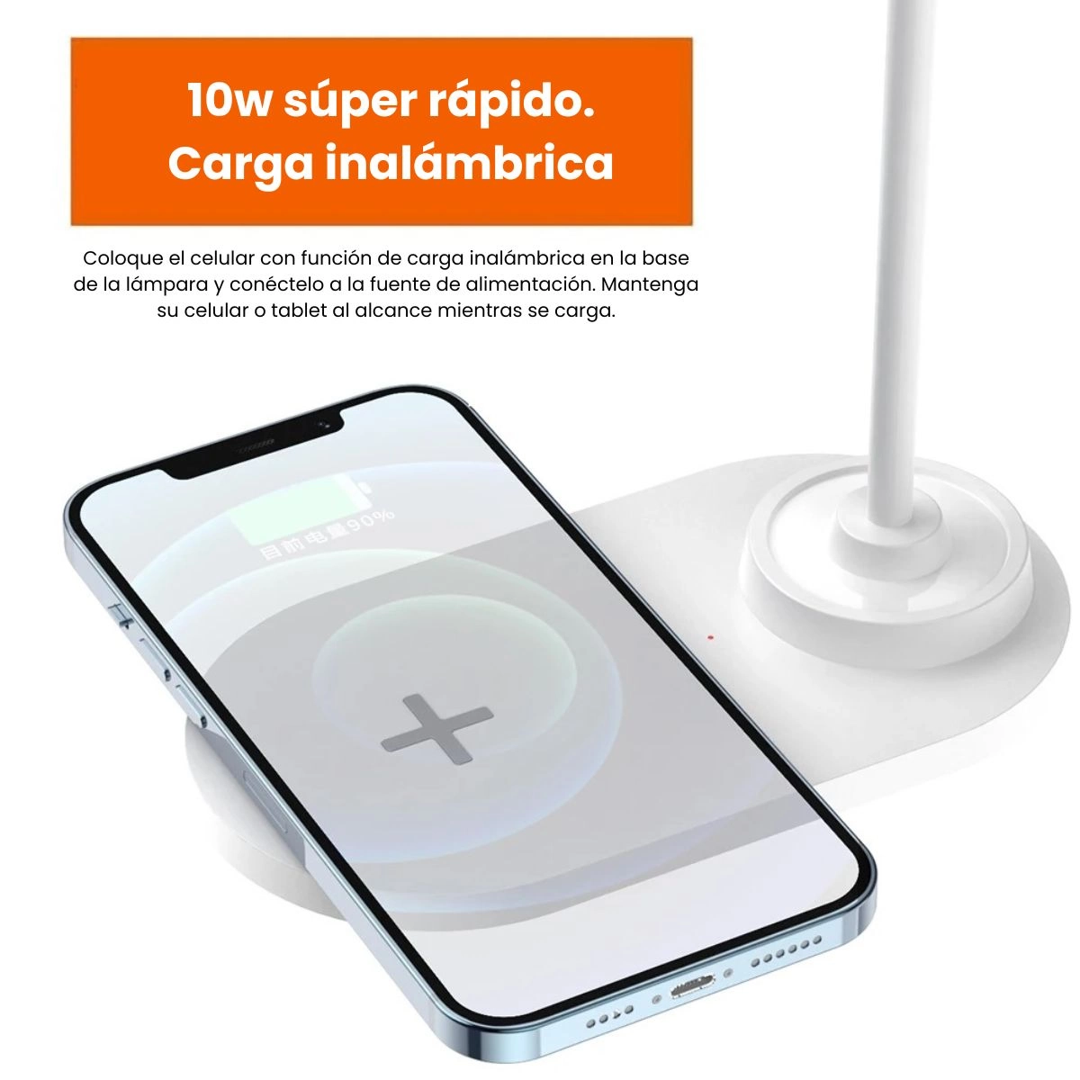Lámpara LED con base de carganLuminaria con carga inalámbricanLámpara de escritorio con carga inalámbricanIluminación LED con base para carganLámpara de mesa inalámbrica de 15W