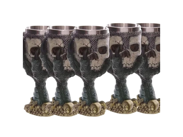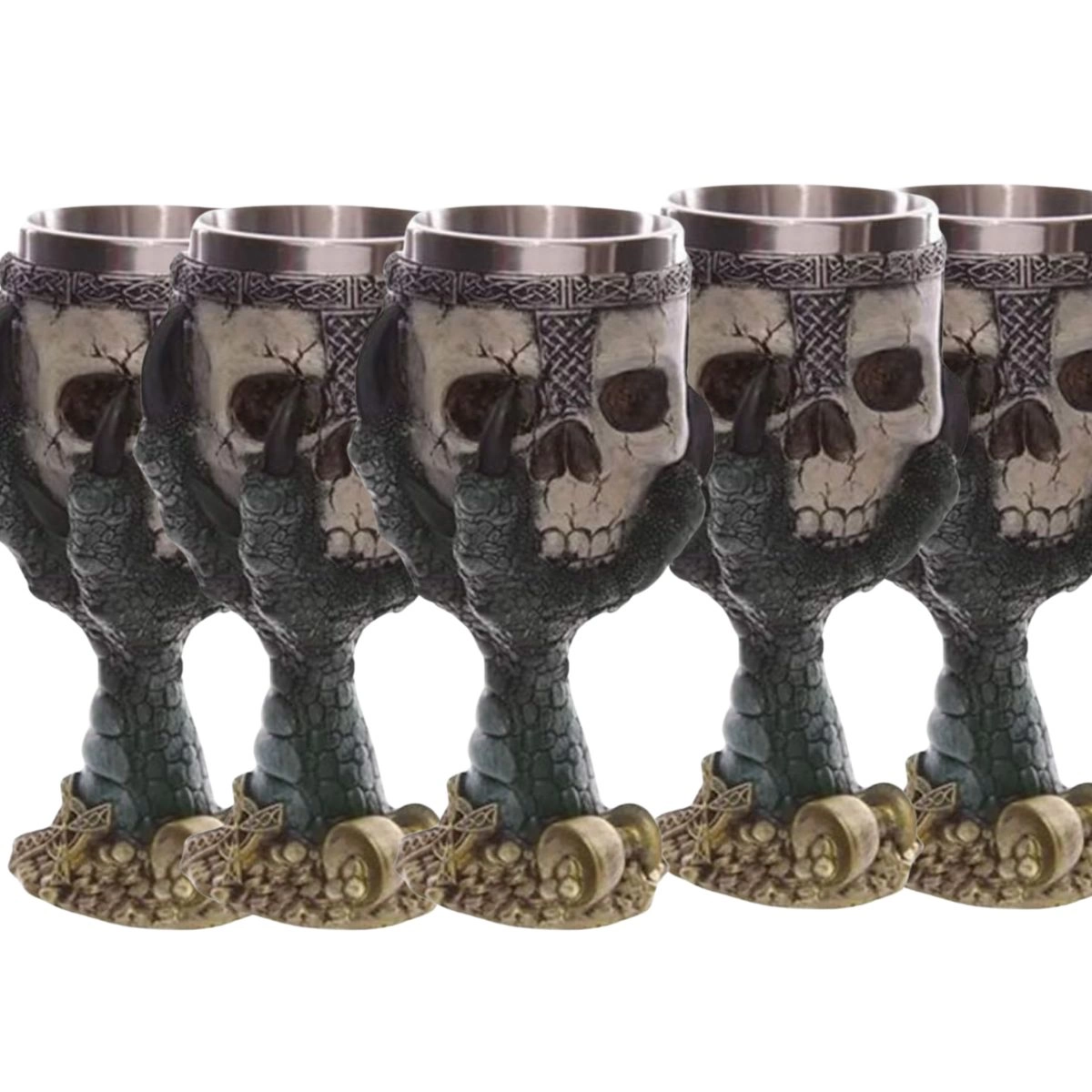 Material: Vasos para beber con forma de calavera de resina y acero inoxidable.