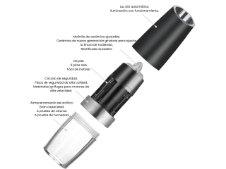 Cuenta con 3 luces LED azules que se encienden automáticamente cuando el molinillo está en funcionamiento.