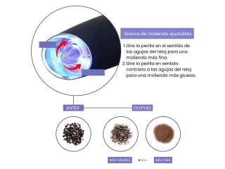 Capacidad: aproximadamente 120 ml, puede contener 60-70 g de pimienta.