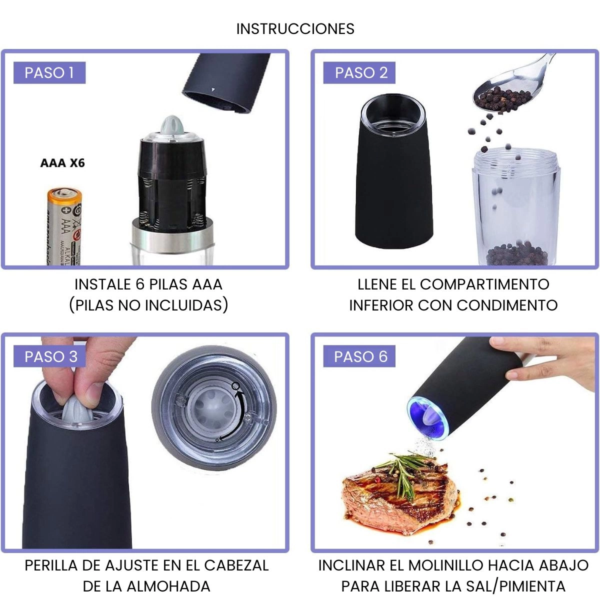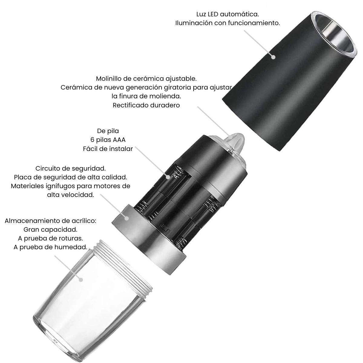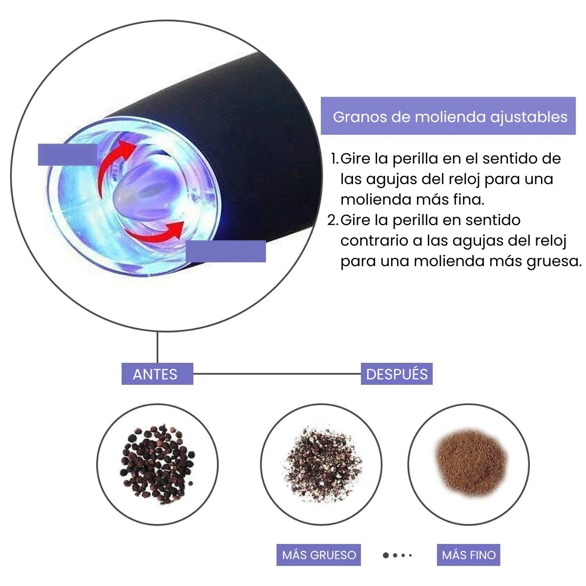 Gire el molinillo para activar automáticamente la molienda de sal o pimienta fresca para su plato favorito.