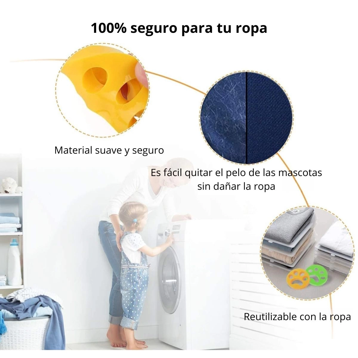 Seguro y no tóxico: se puede utilizar tanto en lavadora como en secadora, seguro para toda la ropa, no tóxico, hipoalergénico. Con la rotación de la máquina, la depiladora de mascotas absorbe completamente el pelo de la ropa, haciendo que el lavado sea más limpio y la suciedad no bloqueará el drenaje.