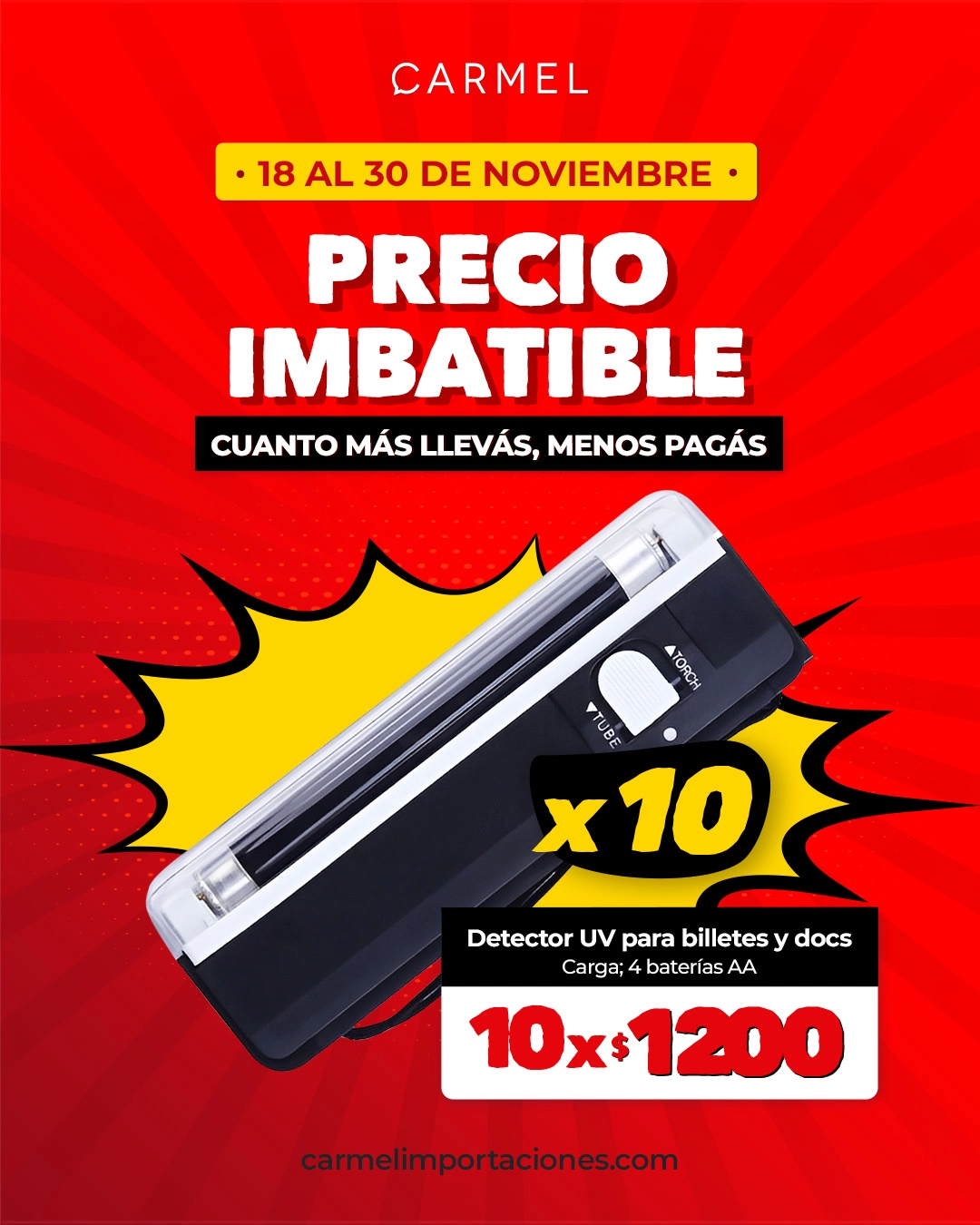 Detector UV portátil con linterna incorporada, ideal para identificar billetes falsos y verificar documentos oficiales. Compacto, fácil de usar y resistente, perfecto para negocios, oficinas o reventa al por mayor.