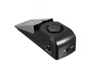 Luego, apague la alimentación cuando la alarma del tope de la puerta no está en uso. La unidad de alarma se puede utilizar como tope de puerta para evitar que el pomo de la puerta golpee la pared si la puerta con bisagras se abre con demasiada brusquedad.
