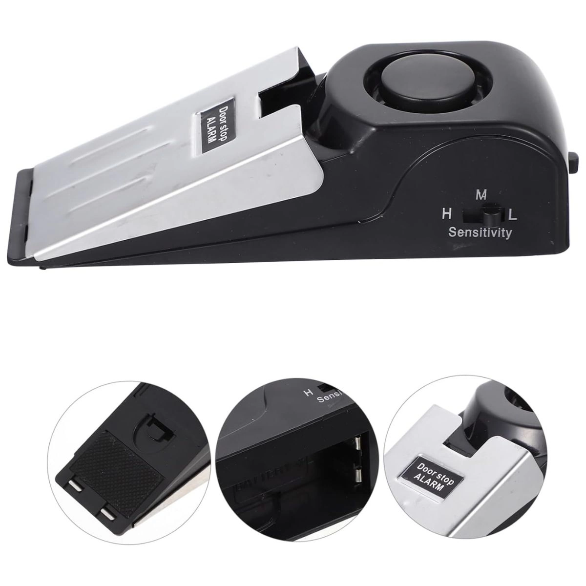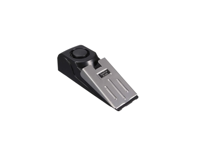 Después de instalar la batería de 9V coloque la alarma del tope de la puerta detrás de una puerta cerrada para asegurar la habitación.