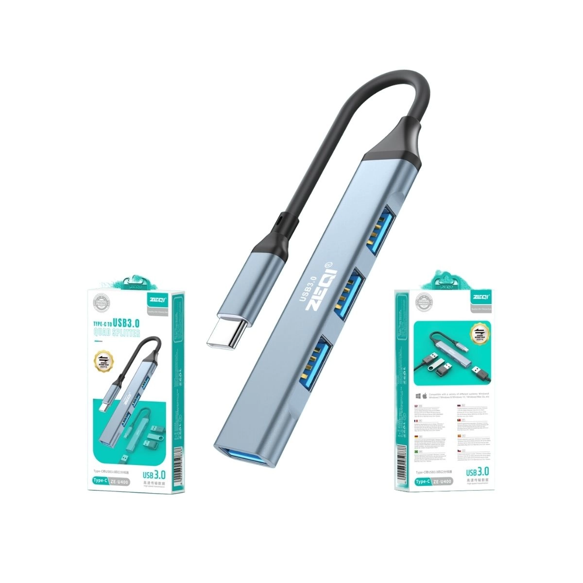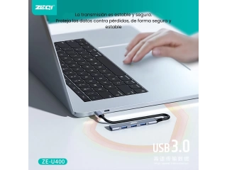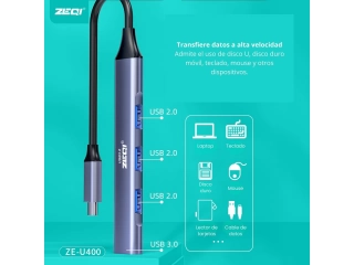 Aumentá la conectividad de tus dispositivos con el Multiplicador ZEQI ZE-U400, que convierte una conexión USB-C en cuatro puertos USB 3.0. Ideal para transferencias de datos rápidas y eficientes, este adaptador es perfecto para expandir las capacidades de tu laptop o PC. Con su diseño compacto y portátil, es una solución práctica para quienes necesitan más puertos USB en el día a día.