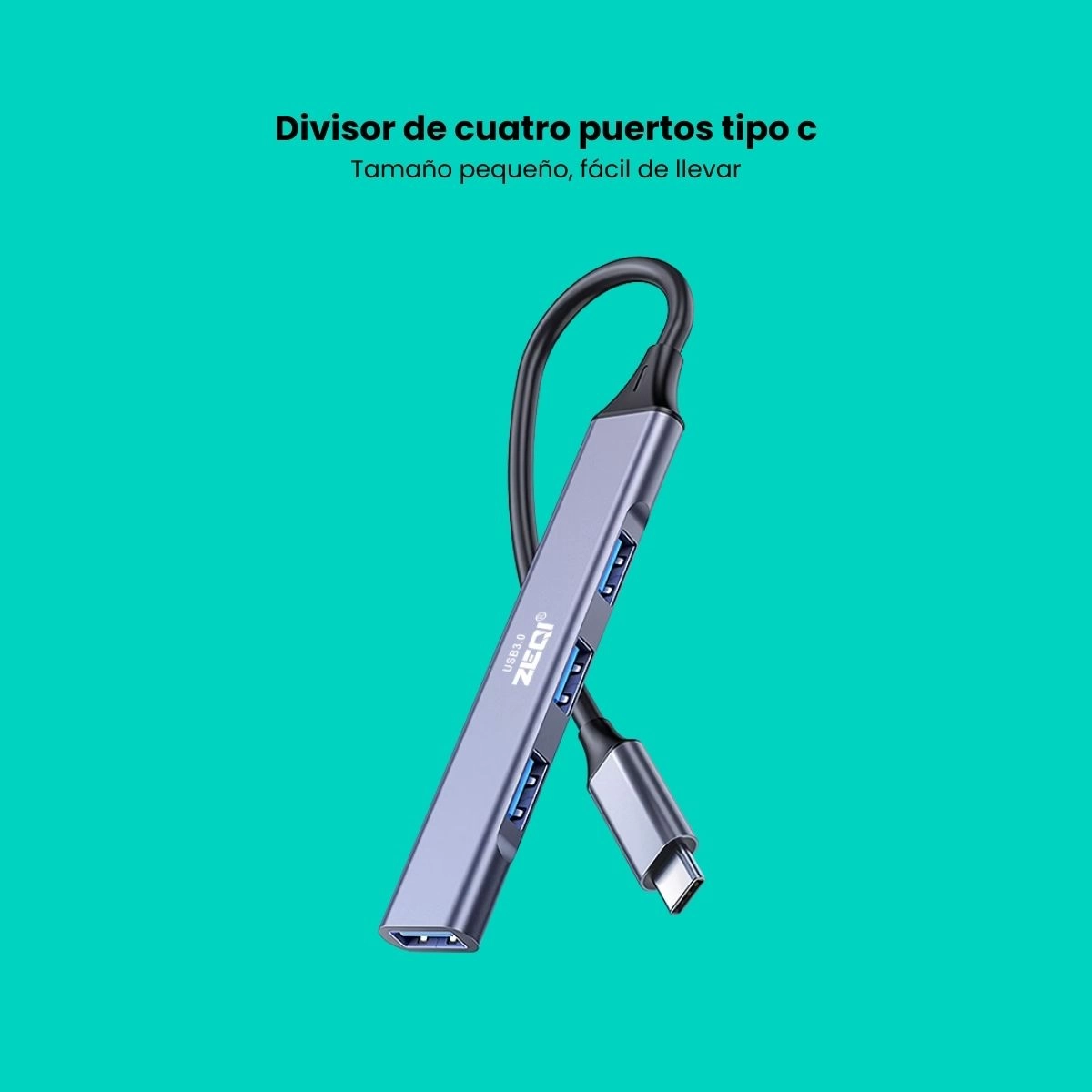 Zeqi multiplicador de puertos USB-C, hub USB-C a 4 puertos USB 3.0, adaptador USB-C a múltiples puertos, expansor USB-C a USB 3.0, concentrador USB tipo C, multiplicador de puertos USB de alta velocidad, hub USB-C portátil, modelo ZE-U400, hub compacto para USB-C, adaptador multiusos USB-C a USB 3.0
