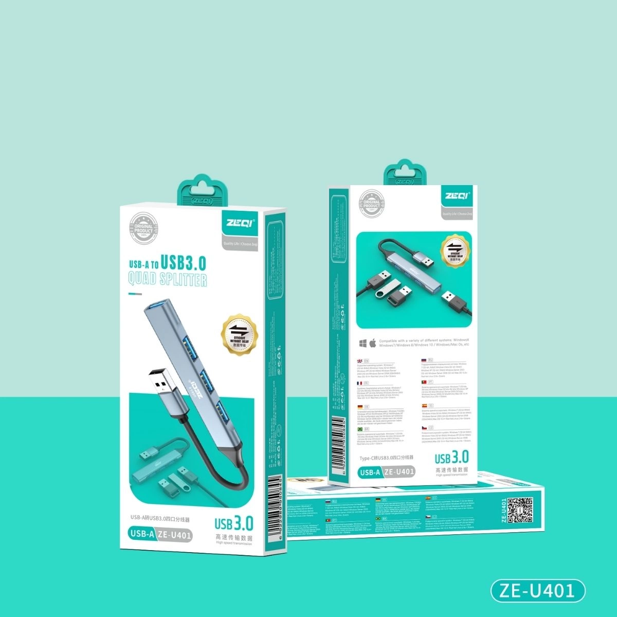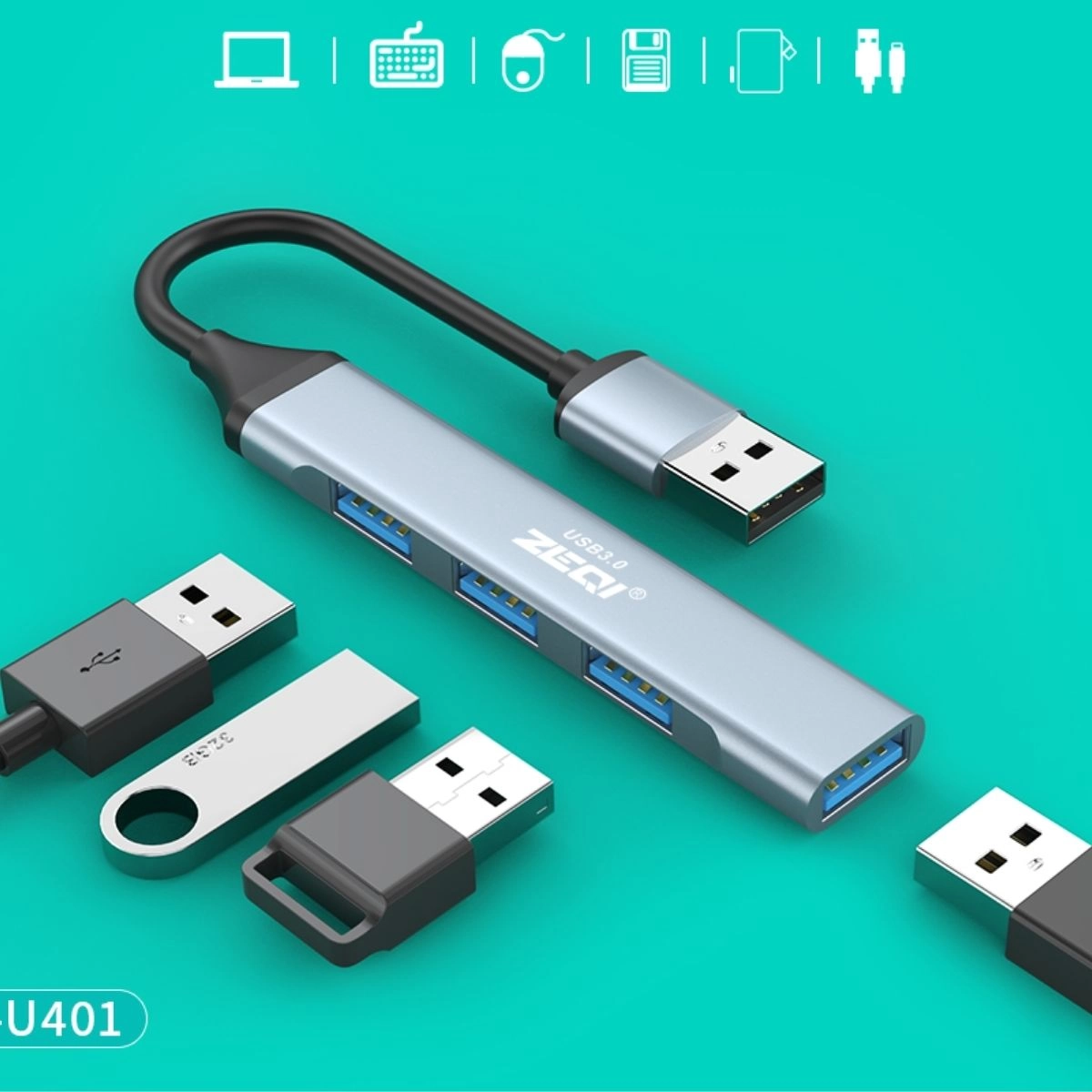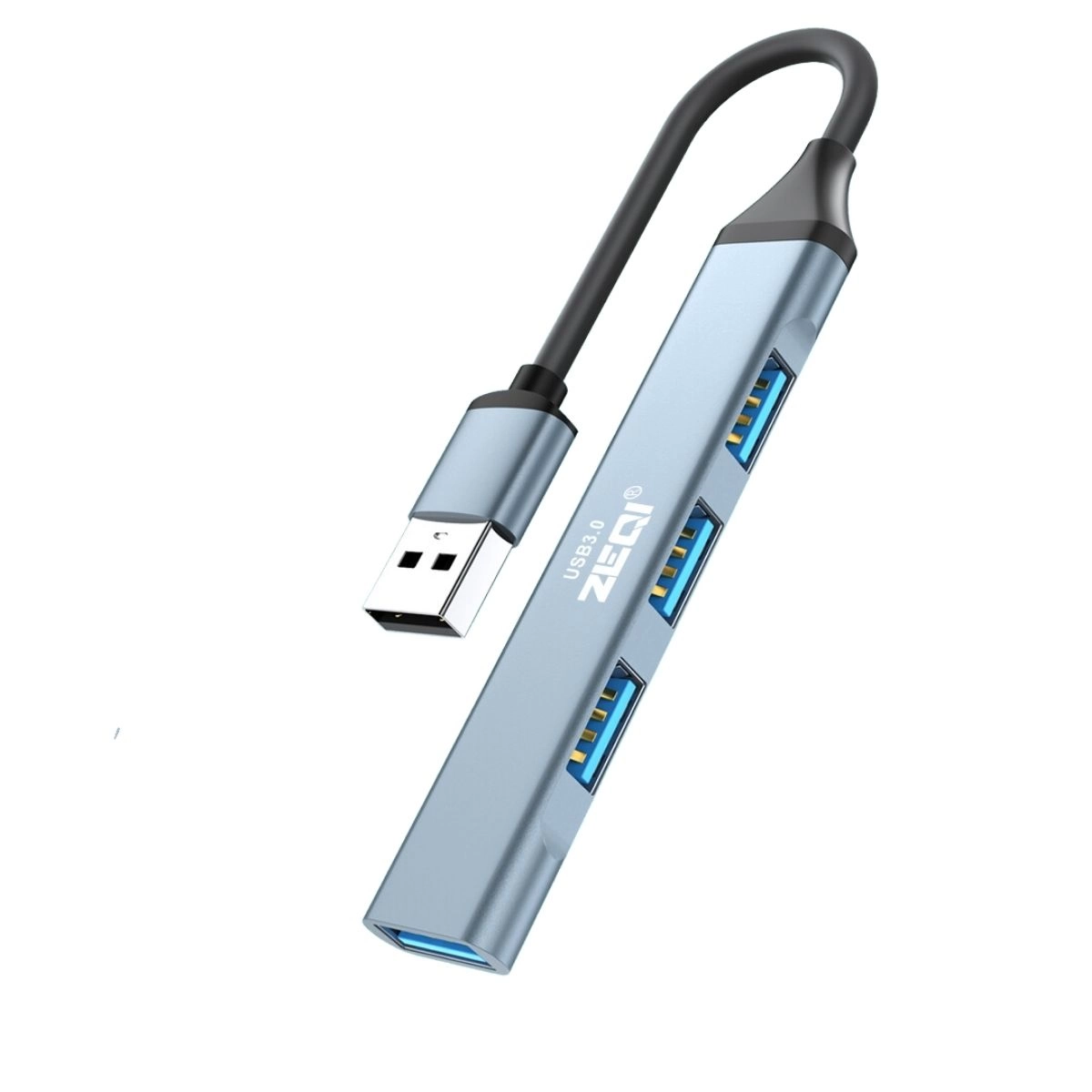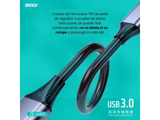 nmultiplicador de puertos USB, ZEQI USB 3.0, hub USB 4 puertos, multiplicador USB macho, hub USB compacto, distribuidor USB 3.0, concentrador USB 4 puertos, adaptador USB, multiplicador de puertos para computadora, ZE-U401.