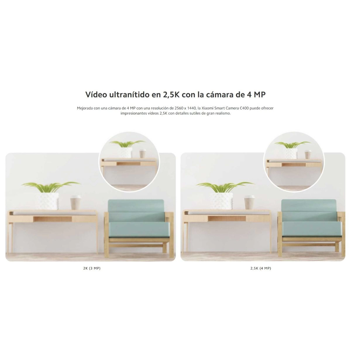 Actualizada a una cámara de 4MP con una resolución de 2560×1440, la Xiaomi Smart Camera C400 puede ofrecer increíbles videos de 2.5K con todos los detalles sutiles que son reales.