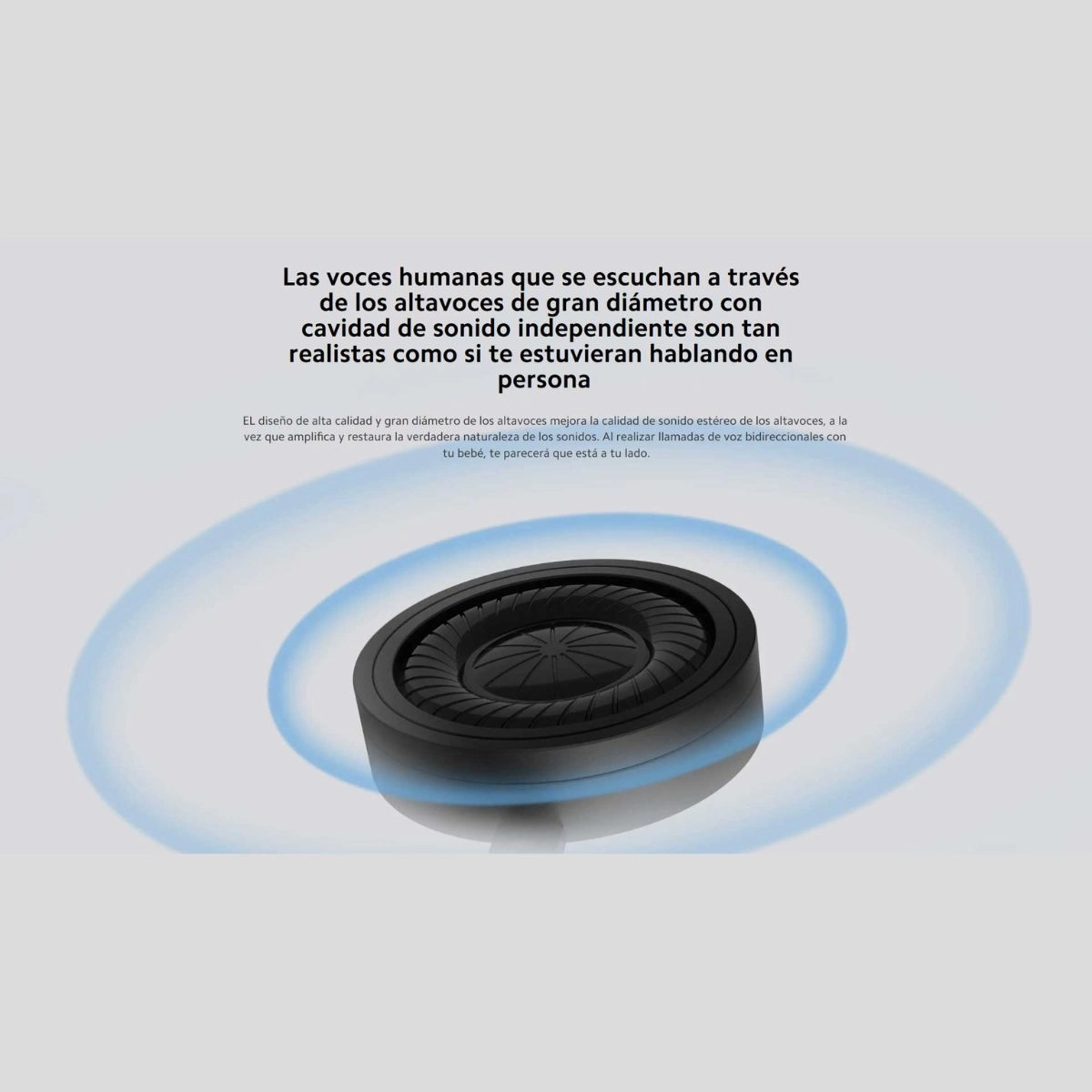 El diseño de alta calidad y gran diámetro de los altavoces mejora la calidad del sonido estéreo de los altavoces, al tiempo que amplifica y restaura la verdadera naturaleza de los sonidos. Al realizar llamadas de voz bidireccionales con su bebé, sentirá como si su bebé estuviera a su lado.