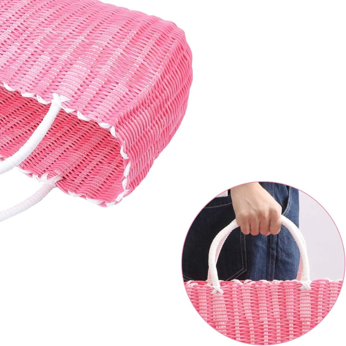 Adecuado para una variedad de escenas, como compras de supermercados, almacenamiento en el hogar, decoración de centros comerciales, regalos, etc. Bolso de ratán de paja.