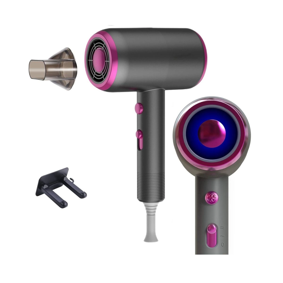 Secador de pelo con 2 accesorios: incluye un concentrador para un estilo suave y un soporte de pared para colgar. Pequeño y lo suficientemente ligero para un almacenamiento compacto cuando se viaja.