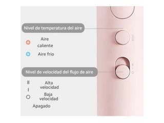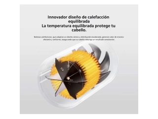 La boquilla de aire gira 360° para facilitar el peinado en cualquier ángulo. El diseño de aislamiento térmico de doble capa reduce la temperatura de la superficie exterior de la boquilla de aire durante el soplado y reduce el riesgo de quemaduras accidentales