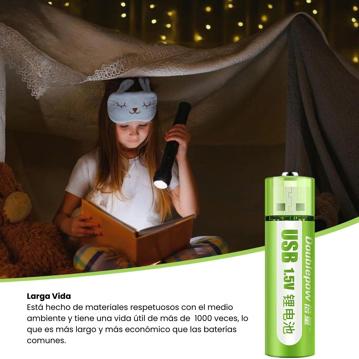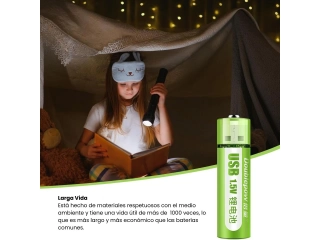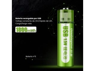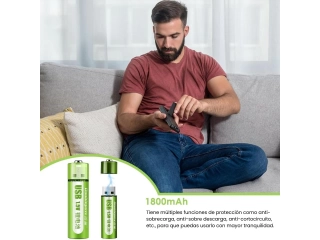 Alta Capacidad con Carga USB: Carga fácilmente estas pilas mediante cualquier fuente de alimentación USB. Un indicador luminoso te avisa cuando la carga está completa, listas para su uso inmediato.