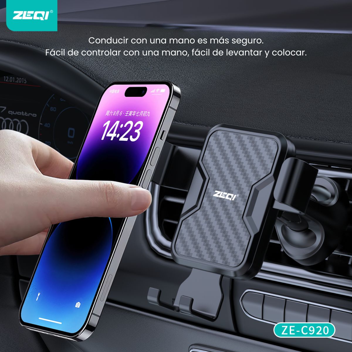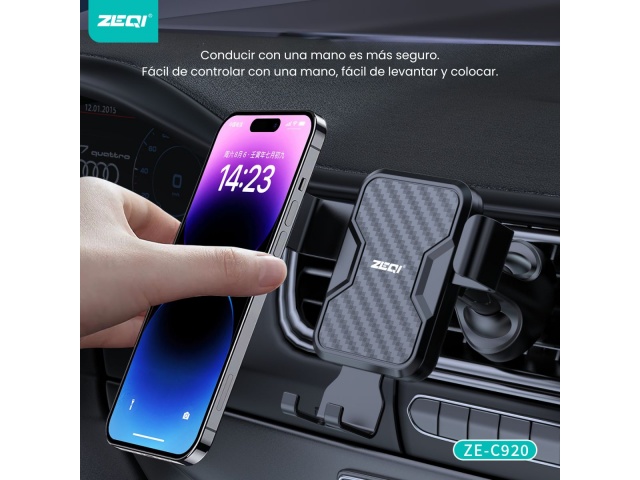 ¡Lleva tu celular de forma segura y práctica mientras conduces! El Soporte para coche ZE-C920 se ajusta automáticamente con su sistema de acoplamiento por gravedad, brindando una sujeción firme y estable. Diseño telescópico, fácil de instalar y compatible con la mayoría de los vehículos. Ideal para mantener tu dispositivo al alcance sin perder de vista el camino. Marca Zeqi, calidad garantizada.