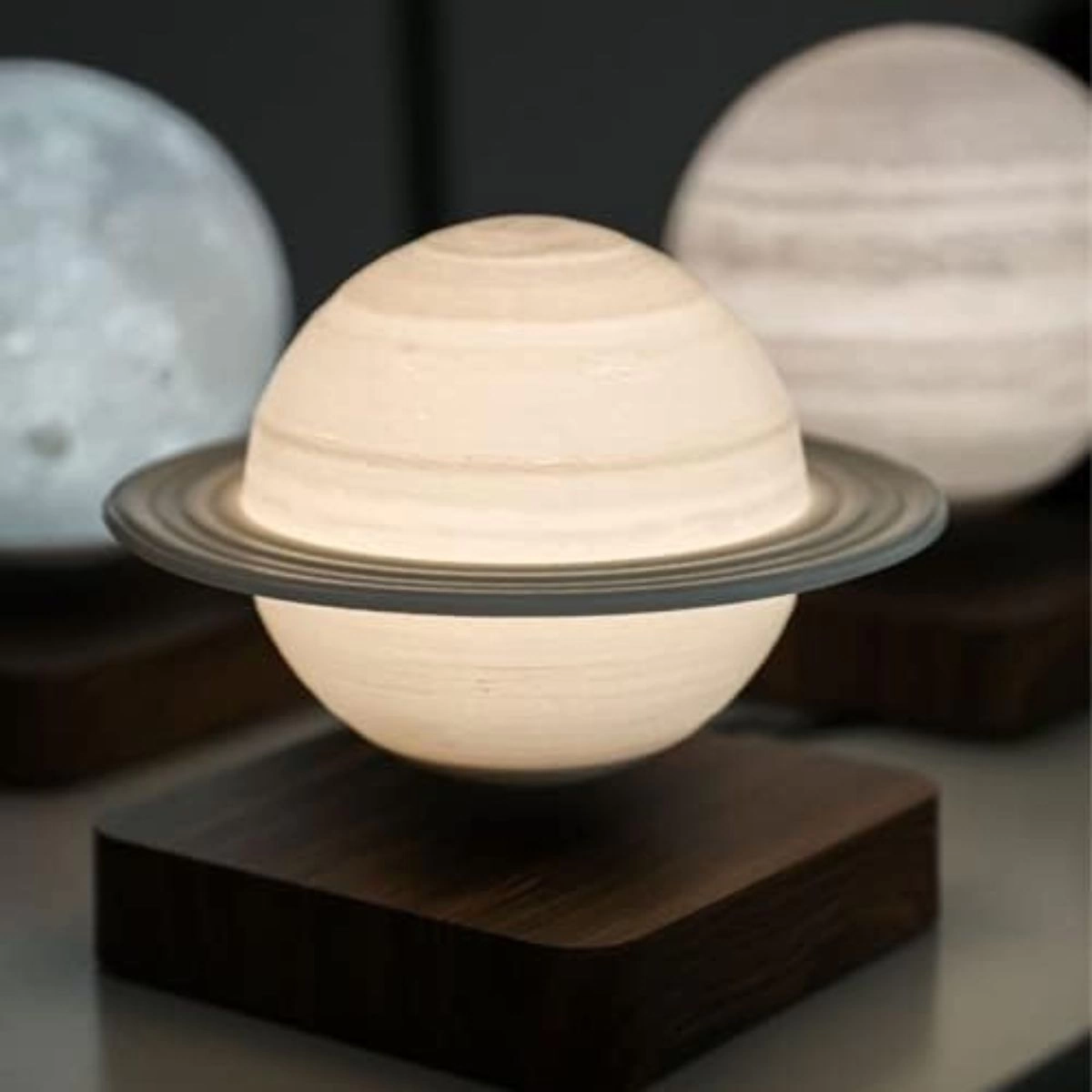 Lámpara levitante con diseño de planeta SaturnonLámpara flotante con forma de SaturnonLuminaria levitadora con aspecto de planeta SaturnonLámpara magnética en forma de SaturnonLámpara de levitación con diseño del planeta Saturno