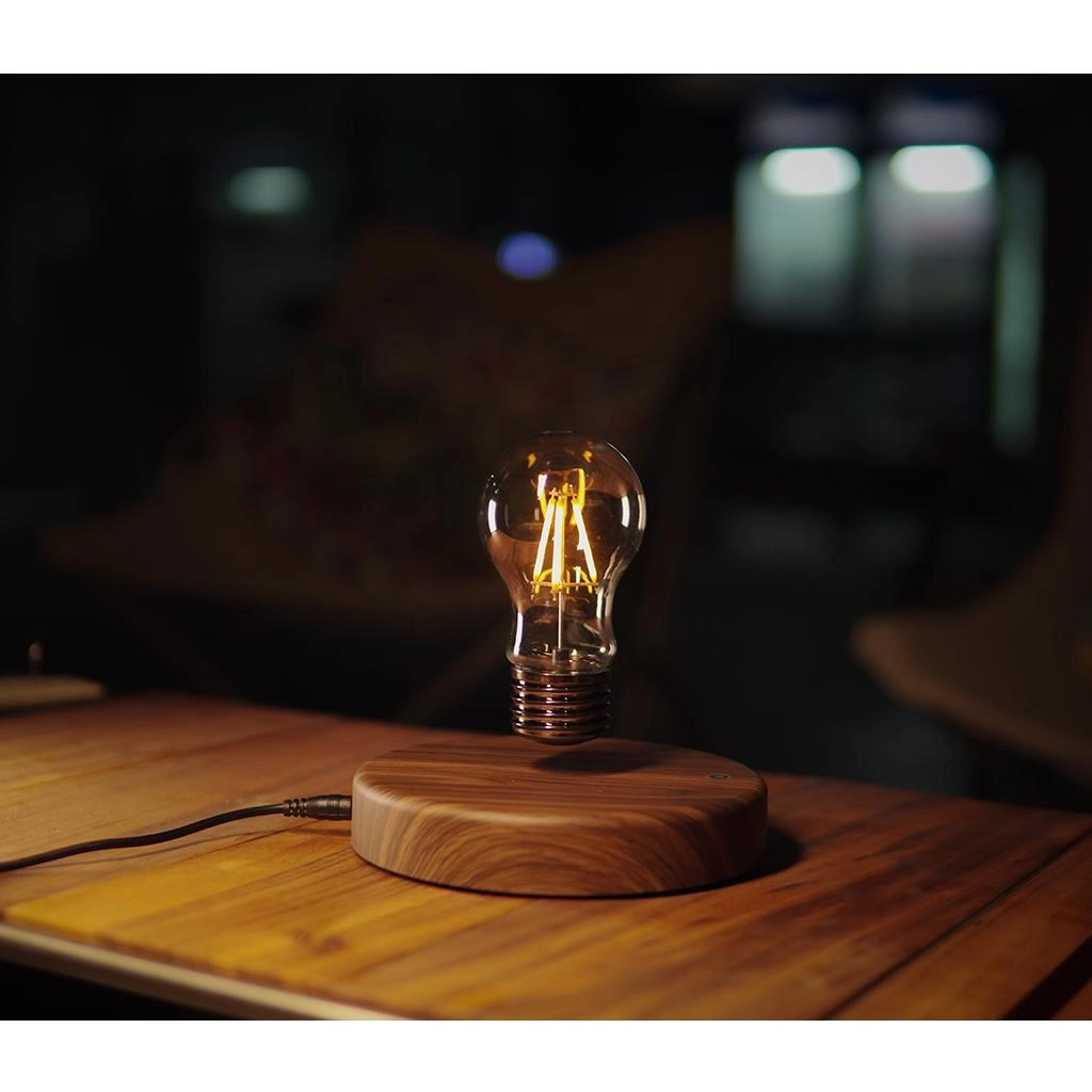 - Lámpara bombillo de filamento con levitación magnética: la misma queda suspendida y gira automáticamente en medio del aire libremente, sin ningún soporte o contacto, capaz de atraer los ojos de las personas.